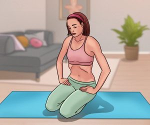 Posture : mets-toi à genoux sur un tapis, et assieds-toi sur les talons. Pose tes mains sur le haut de tes cuisses, et penche légèrement le dos vers l’avant.