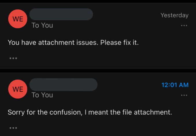 « Désolé pour la confusion, je parlais de la pièce jointe. »
