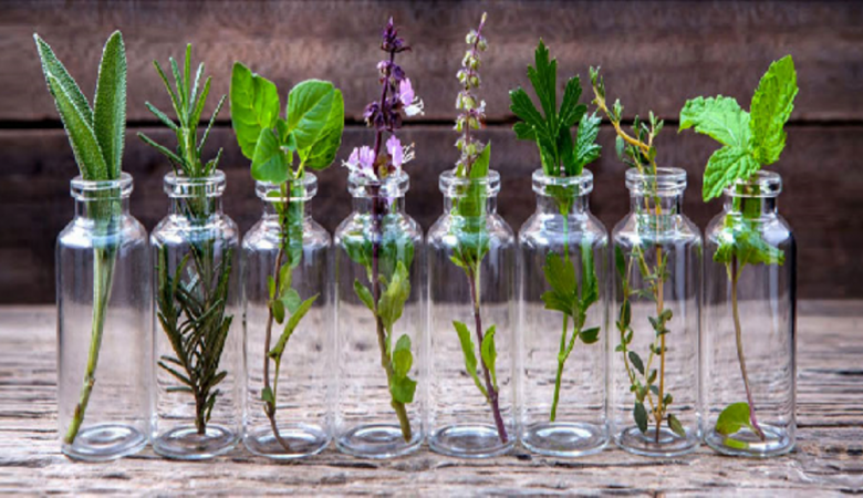 Mettez des boutures d’herbes dans des bouteilles en verre avec de l’eau de source de préférence, car elle contient beaucoup de minéraux. La bouteille doit être de couleur foncée pour éviter à la racine de la plante d’être exposée à la lumière, sinon vous pouvez mettre autour du papier journal.