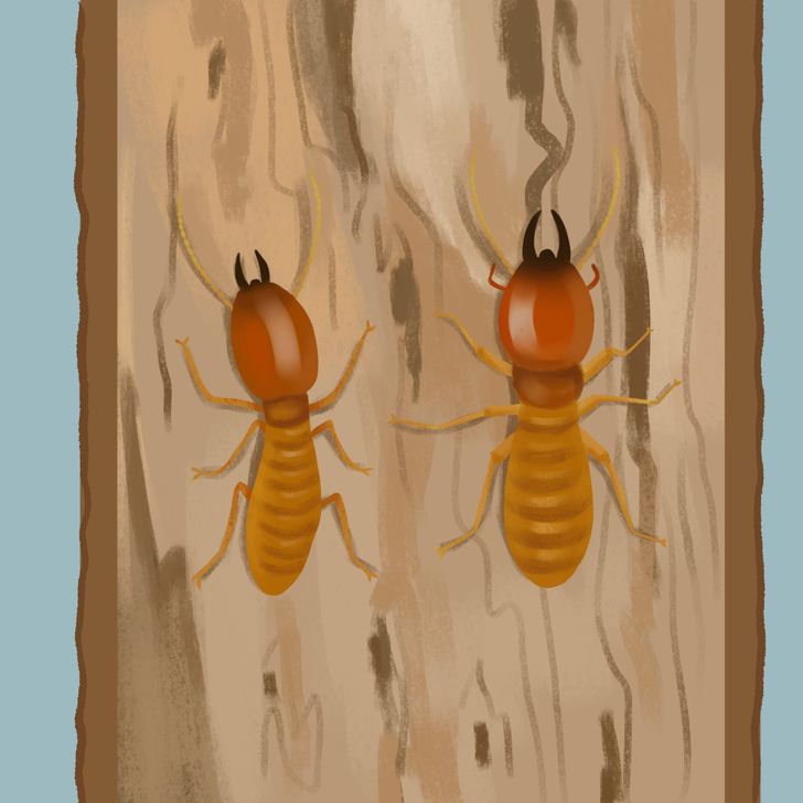 C’est un autre signe d’infestation par les termites. Ces insectes vivent juste sous la surface du bois, c’est pourquoi la peinture n’a rien à quoi s’accrocher, si bien que la fine couche de peinture commence à s’écailler ou à faire des bulles.