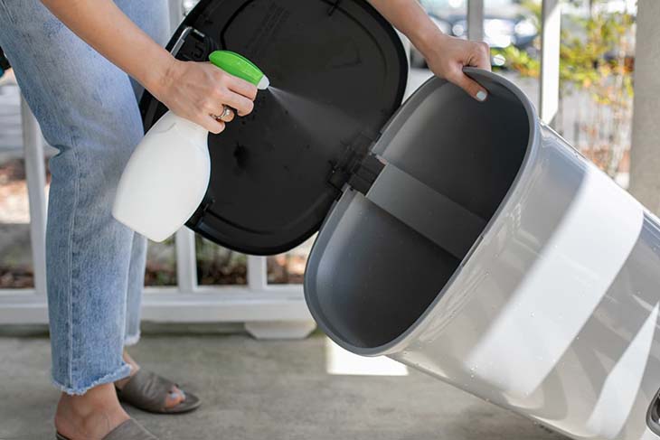 Liquide vaisselle : Versez un peu de liquide vaisselle dans votre poubelle, arrosez l’intérieur avec un tuyau d’arrosage, laissez agir pendant quelques minutes et frottez ensuite les parois avec une brosse. Il ne vous restera plus qu’à rincer votre poubelle et à la faire sécher.
