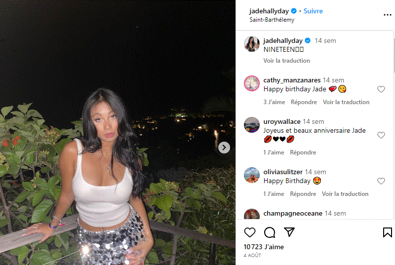 Ce jeudi 3 août 2023, Jade Hallyday soufflait sa 19e bougie. Une occasion pour la jeune femme de partager quelques photos de sa fête sur les réseaux sociaux. « Et encore une bougie de soufflée. Et encore une année de passée ». Ce jeudi 3 août 2023, Jade Hallyday, fille aînée de Laeticia Hallyday, fêtait son 19ᵉ anniversaire. Une date que sa sœur Joy a célébrée en lui adressant un touchant message sur les réseaux sociaux. « Joyeux anniversaire à ma base. Je t’aime de tout mon cœur. J’aime être ta petite sœur et t’avoir comme ma sœur et meilleure amie. Je ne sais pas ce que je ferais sans toi. Je t’aime », écrivait-elle sous un adorable montage photo en noir et blanc. Pour l’occasion, la fille du Taulier, adoptée en novembre 2004 à Bùi Thị Hoà, s’est envolée vers Saint-Barthélemy où une fête digne de ce nom l’attendait. Au programme : Gâteau au chocolat, soirée blanche et pluie d’enfants de stars. En effet, Nina et Romy Maurici, les deux filles de Calogero étaient de la partie. Jade Hallyday victime de violentes critiques Plus fier que jamais de souffler sa 19ᵉ bougie, Jade Hallyday a d’ailleurs pris ses réseaux sociaux afin de partager quelques photos de son birthday. Une fête durant laquelle elle arborait un débardeur blanc ainsi qu’une mini-jupe grise à sequins. Malheureusement, les clichés de la jeune femme n’ont visiblement pas fait l’unanimité auprès des internautes. Choqués par l’accoutrement de la jolie brune, les internautes étaient nombreux à la critiquer. « Majeure… Va falloir bosser un peu maintenant… Quel air triste », « Complètement shootée », « Elle a l’air tellement défoncé sur la photo », « Vulgaire comme toujours », « Avec un joli sourire, ce serait mieux… », « C’était de la bonne », « Tu es sortie d’une fête, tu as les yeux bien fatigués », « De pire en pire… Un peu de respect pour toi-même jeune fille… », « Elle a fumé quoi ? », pouvait-on lire dans les commentaires. Pour rappel, ce n’est pas la première fois que Jade Hallyday fait ainsi face à la colère des internautes. Sa sœur, Joy, fait également couler beaucoup d’encre. Kelly Vedovelli s’en était d’ailleurs violemment prise à elle sur le plateau de TPMP. Des remarques qui avaient poussé Laeticia Hallyday à prendre la parole. « Il y a des choses qui sont intolérables. La société est dans le jugement. Il y a beaucoup de haine qui s’est installée après le Covid. Il faut protéger nos enfants de ça. Et malheureusement, ils sont victimes aussi des réseaux sociaux, parce que c’est leur génération. Ce n’est plus la même génération que la nôtre, il y a des codes qu’on ne comprend pas tout le temps. Mais ce que Joy a vécu, à 14 ans, c’est d’une telle violence ! C’est mon devoir de maman de protéger mon enfant, de la protéger de toute cette injustice, c’est intolérable », lançait-elle dans les colonnes de Sud Info. Une vraie maman poule !