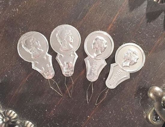 Avec une drôle de forme mais pourtant très familière, ces objets ressemblant à de vieilles pièces de monnaie sont loin d’être ce que leur apparence suggère. Ces enfile-aiguilles, comme leur nom l’indique, sont des objets utilisés en couture pour réussir à insérer le fil dans l’orifice de l’aiguille.