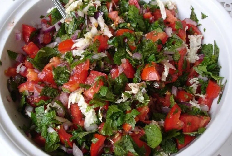 Ingrédients de la salade thermogénique et purifiante : 230 grammes de tomates cerises, 1 concombre épluché et coupé en dés, 1 avocat coupé en dés, un morceau de feta, 2 cuillères à soupe d’oignon haché, 2 cuillères à soupe de persil haché, 2 cuillères à soupe d’huile d’olive, 1 cuillère à soupe de vinaigre, sel et poivre noir.